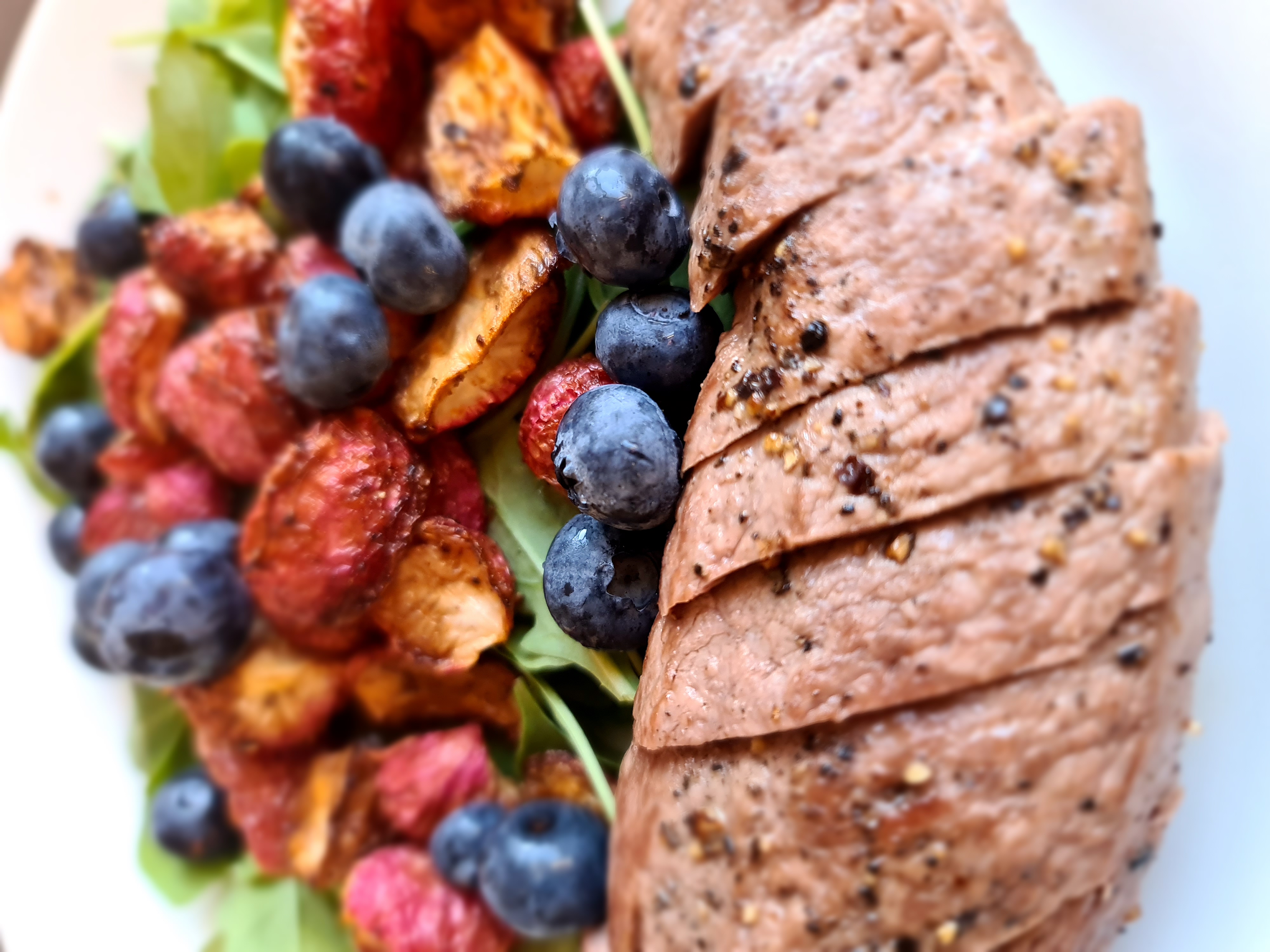 Þetta var ansi gott og ferskt. Getur virkað hvort sem er sem meðlæti eða snakk með t.d. ídýfu. Þær rýrna pínu þannig að ég notaði 220 gr. af radísum og fékk út 91 gr af elduðum (hélt að ég væri að fá afgang).