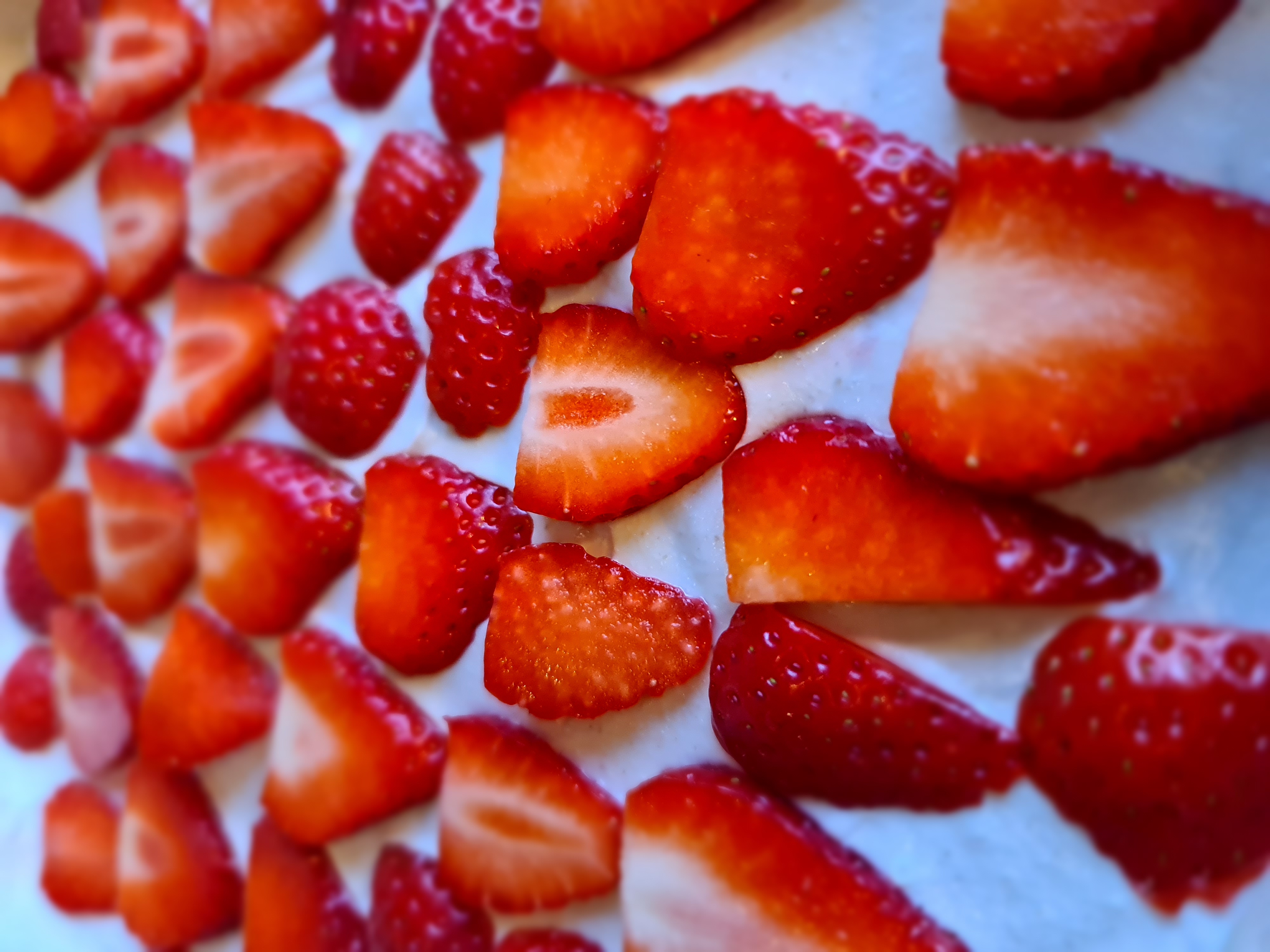 Þessi er algjört æði. Hún er fljótleg, vegan og fullkomin hvort sem er í saumaklúbbinn eða sem eftirréttur. Ég hef líka gert hana með mangó og þá skipti ég einfaldlega út jarðarberjum fyrir mangó. Ég skreytti þá köku líka með berjum.