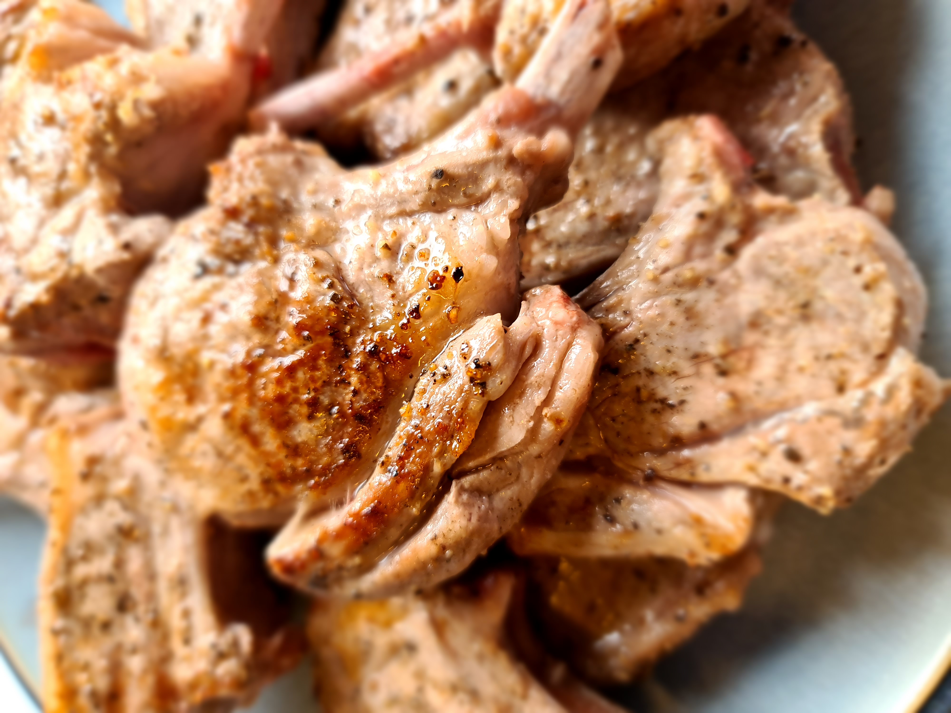 2. Kjötið er kryddað báðum megin. Fínt að gera þetta á meðan þær eru í bakkanum og snúa við