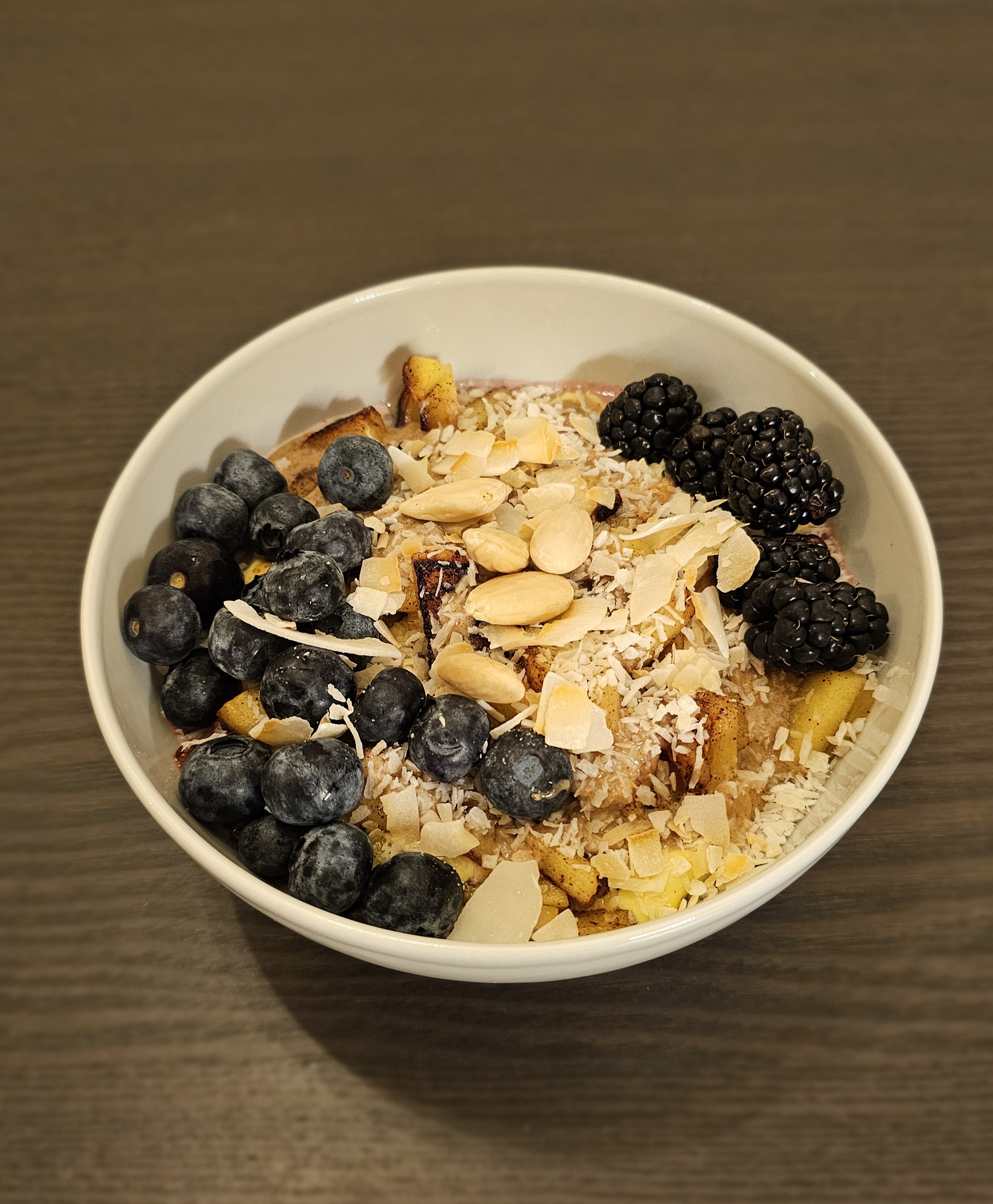 - Leyfið hugmyndafluginu að ráða með toppings. Mér finnst mjög gott að setja t.d. kókósmjöl, kókosflögur, möndlusmjör, bláber, hindber, brómber, soðin epli, banana, möndlur, veganjógurt