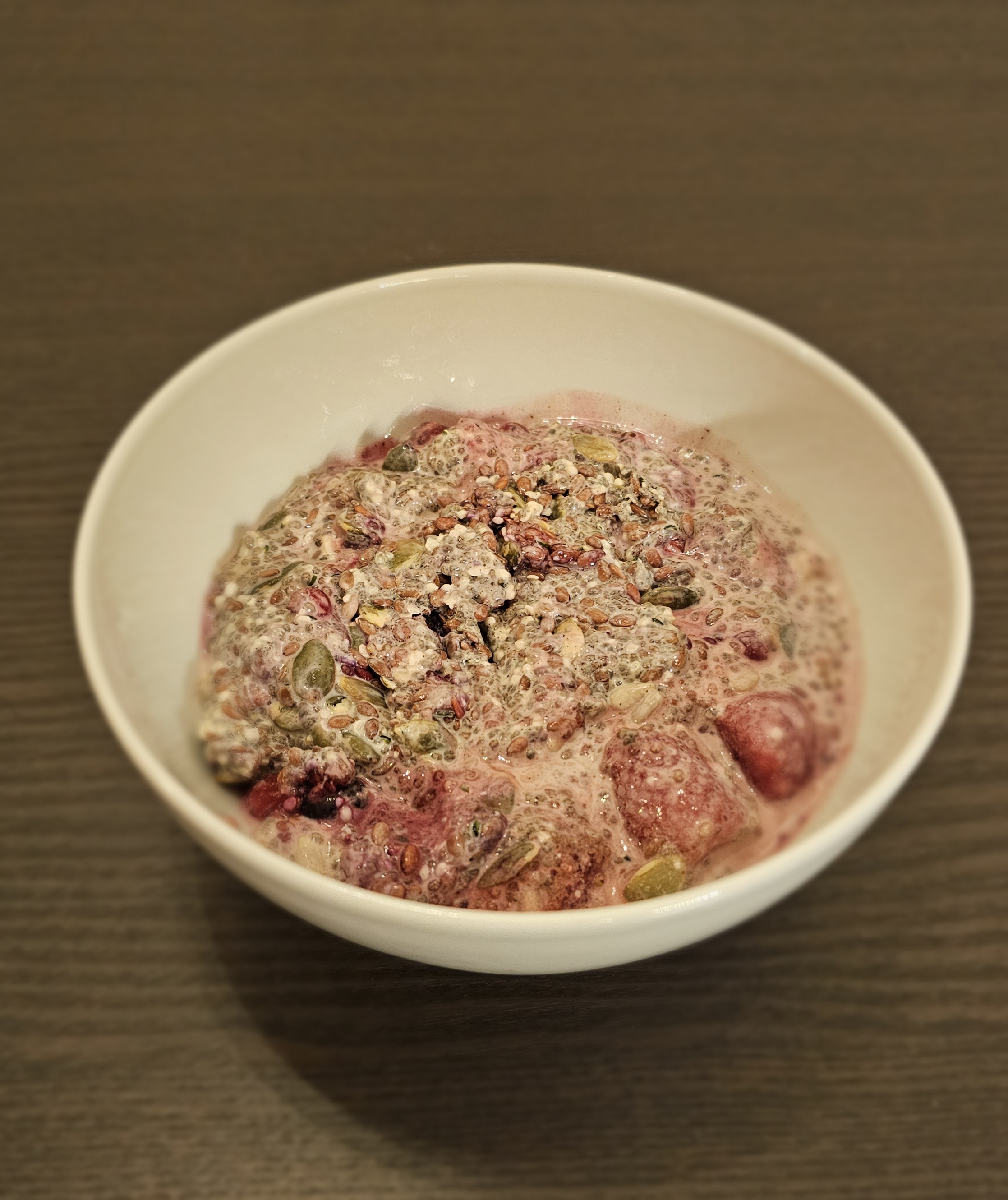 - Berjunum bætt út í, blandað vel saman og sett inn í ísskáp yfir nótt