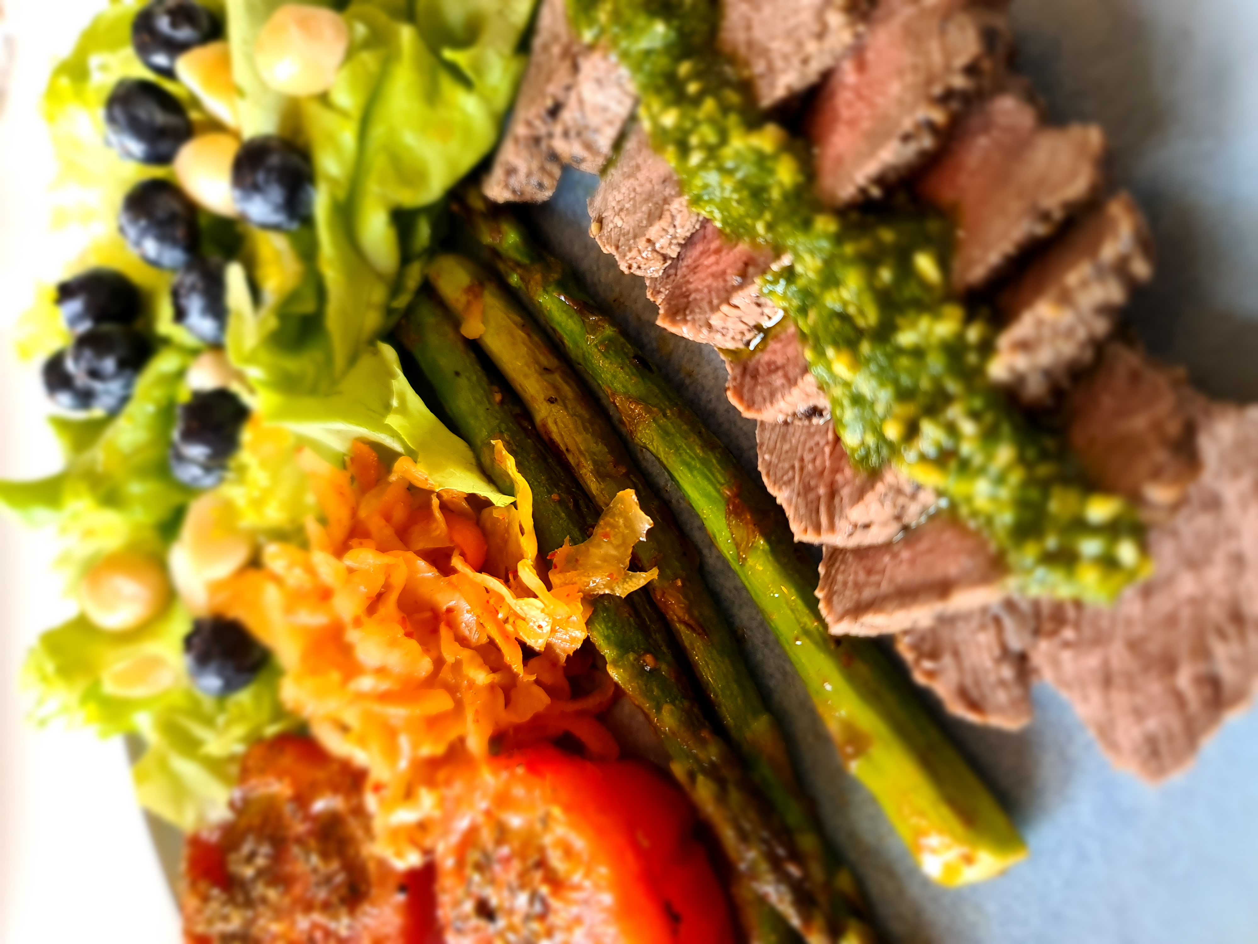 Mér finnst gott að setja pestó yfir kjötið á meðan aðrir nota Bernaisesósu